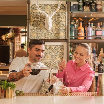 Take a seat at our central bar or cosy up in our welcoming lounge area